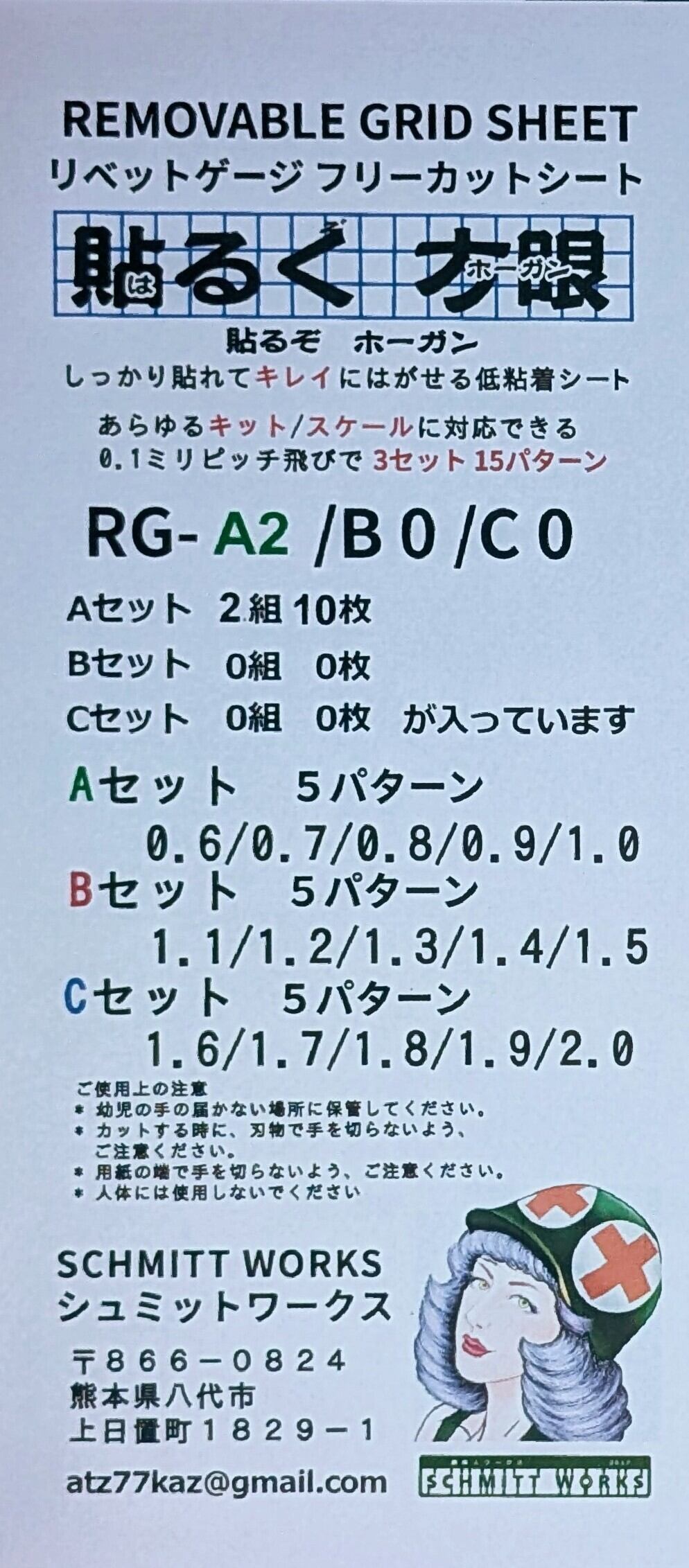 貼るぞホーガンシリーズは、リベットを均等に打つガイドとして、あらゆるキット、スケールに対応出来る0.1ミリピッチ飛びでAセット/Bセット/Cセットの3セット15パターンがあります。